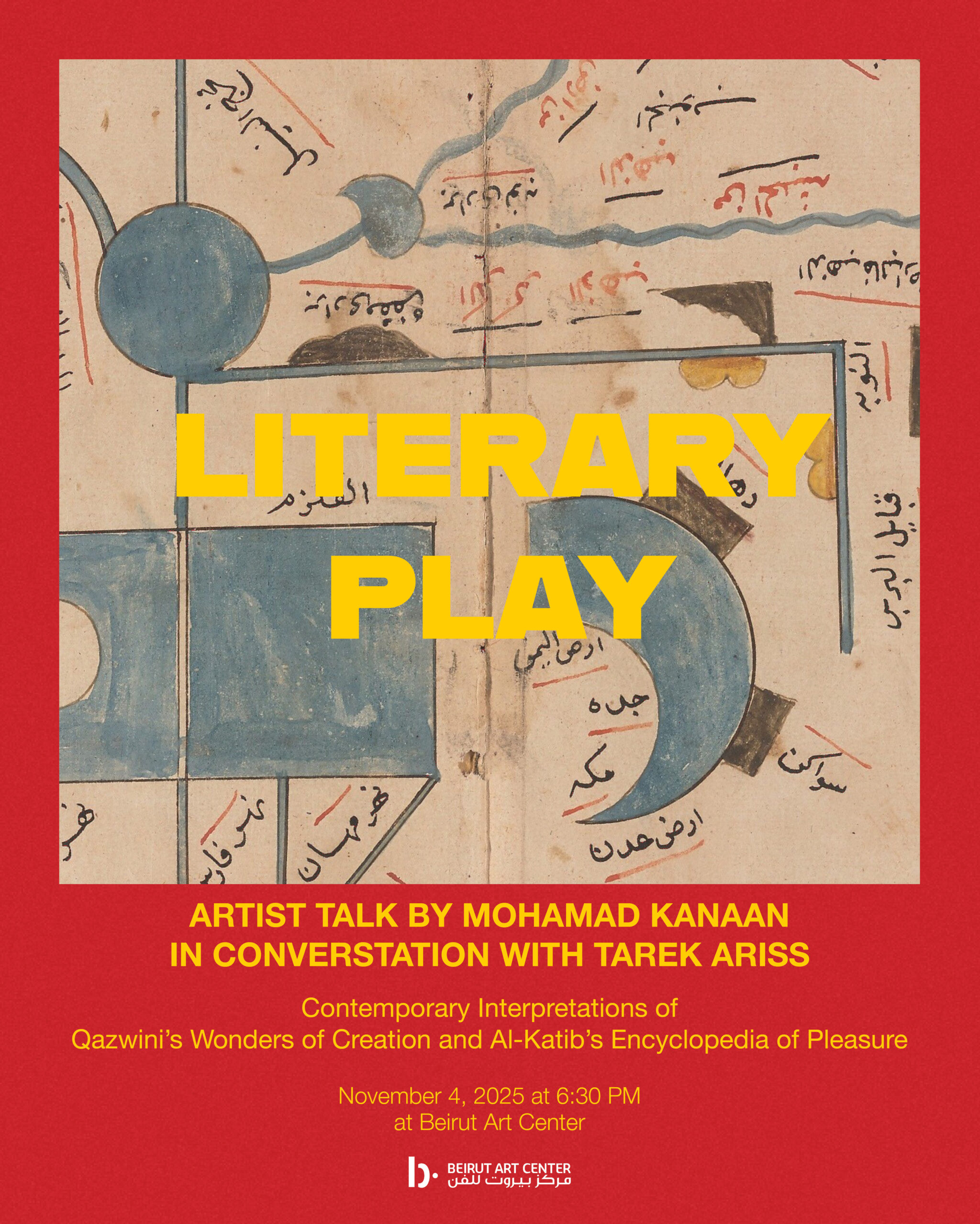 Conversation between Mohamad Kanaan and scholar Tarek El-Ariss about Mohamad’s recent project investigating two medieval Arabic texts: Qazwini’s Wonders of Creation (ʿAjāʾib al-Makhlūqāt) and al-Katib’s Encyclopedia of Pleasure (Jawāmiʿ al-Ladhdha). In this talk, Kanaan will discuss his experimental approach to studying medieval manuscripts, exploring how to read, analyze, and visualize premodern Arabic literature through a critical, interdisciplinary lens. His work challenges conventional ways of engaging with language and the archive, tracing contemporary resonances between text and visual art.